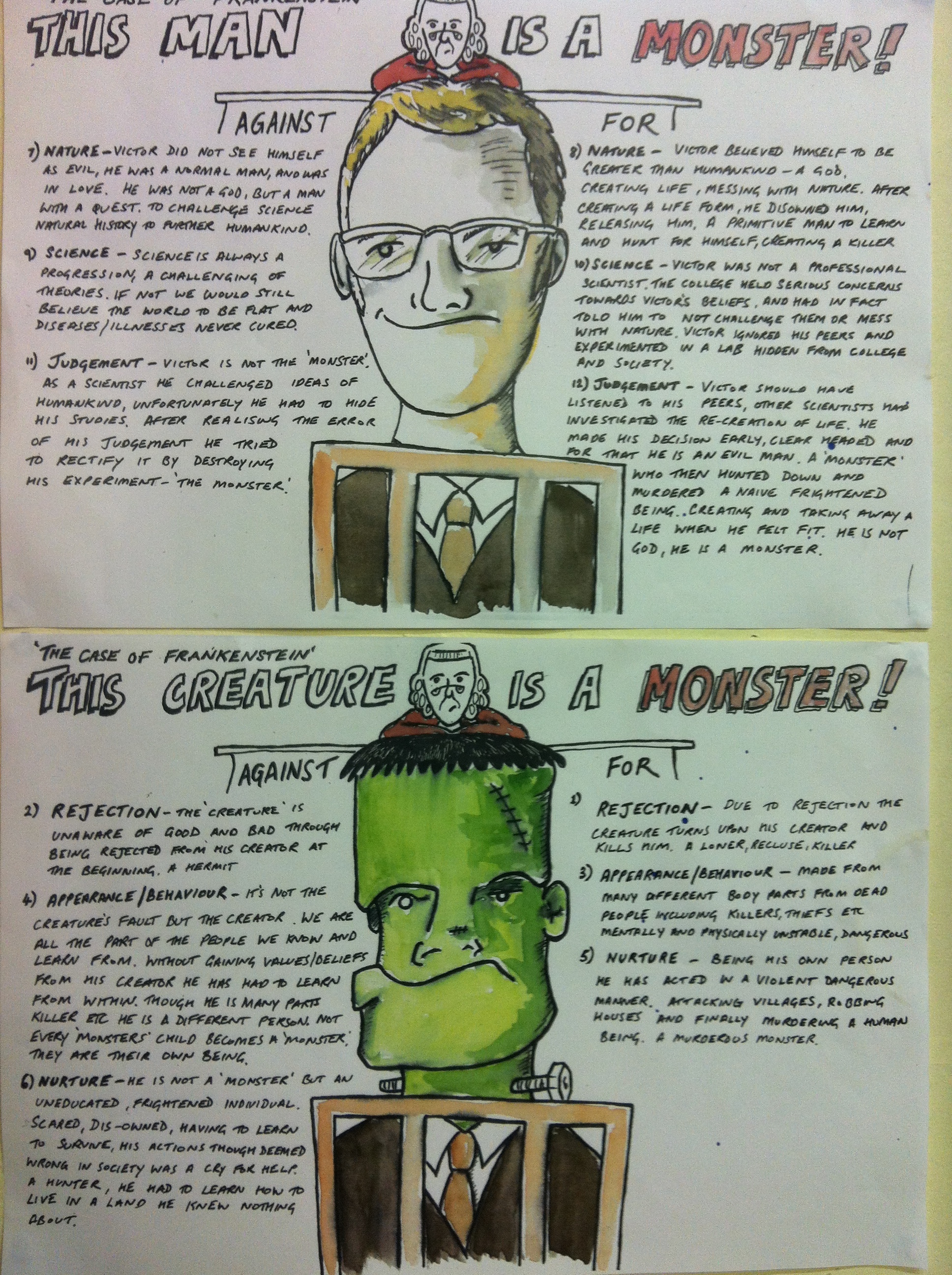 Part of my English Support work to help students with English in KS4 for their Frankenstein essay. Illustration offers pointers to whether it was Dr Frankenstein or the Creature that was THE monster.